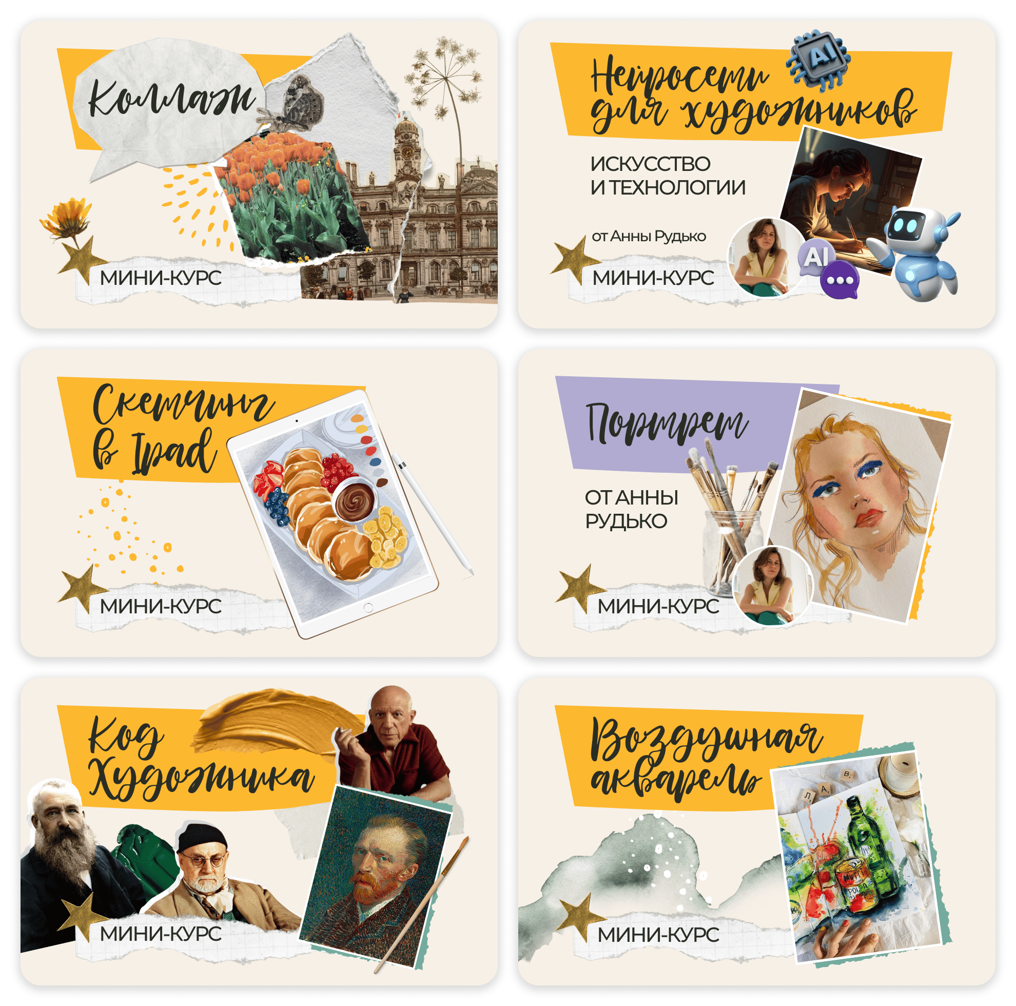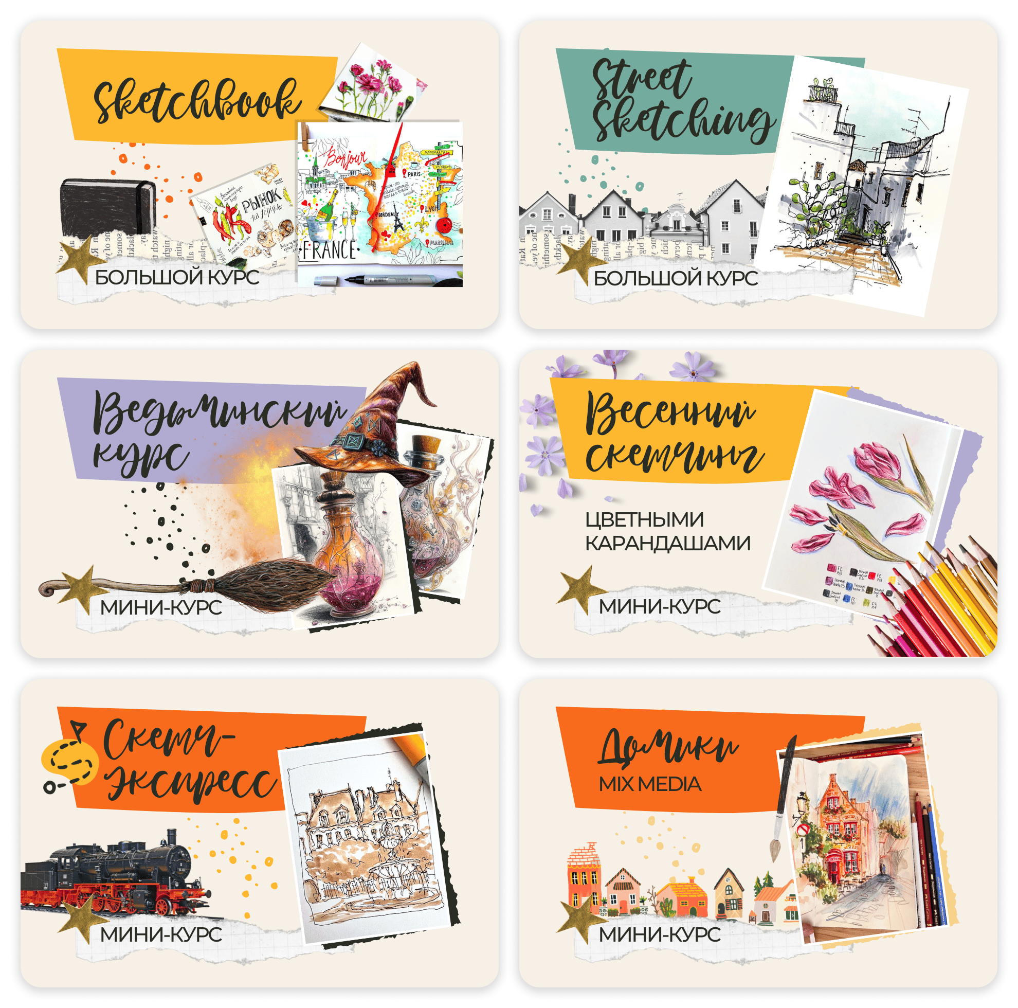 (домики, портреты, цветы, еда, пейзажи, открытки, иллюстрация, леттеринг, скетчинг с натуры, ИИ для художников, монетизация и многое другое)
